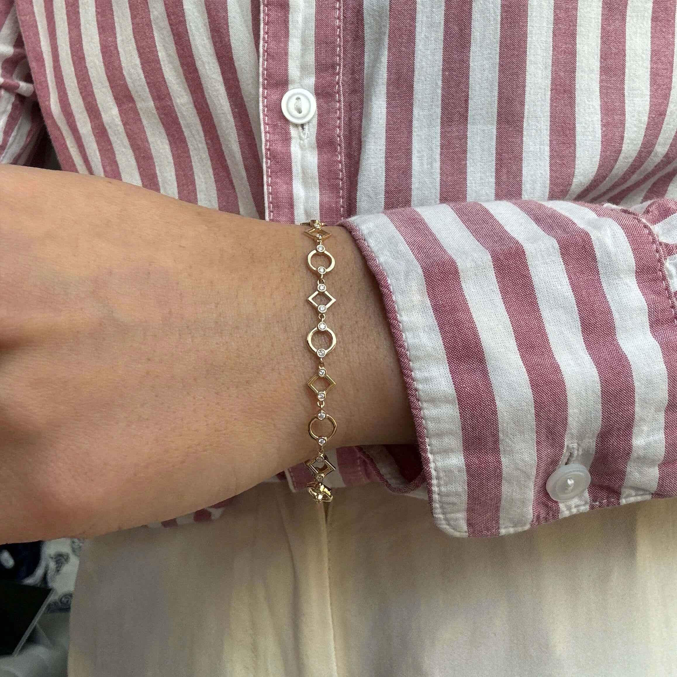 This geometric diamond bracelet embodies femininity. A classy and chic design, the bracelet embodies the connection between two people. This romantic piece is the perfect stackable bracelet yet it's chic enough to wear as a standout. From the Connection Collection.
