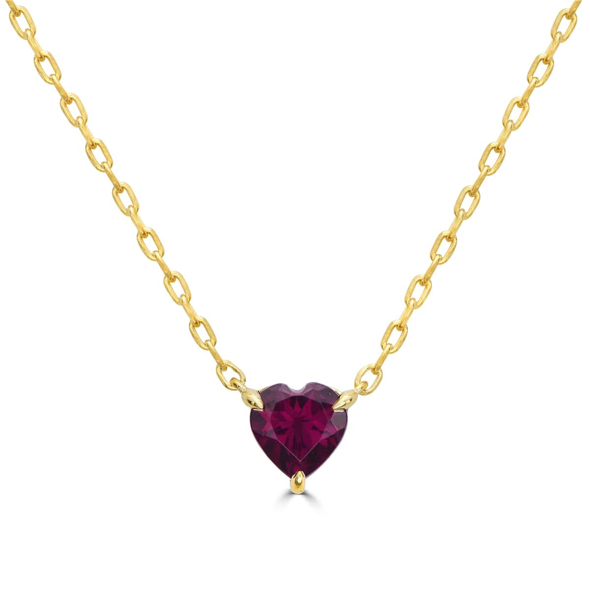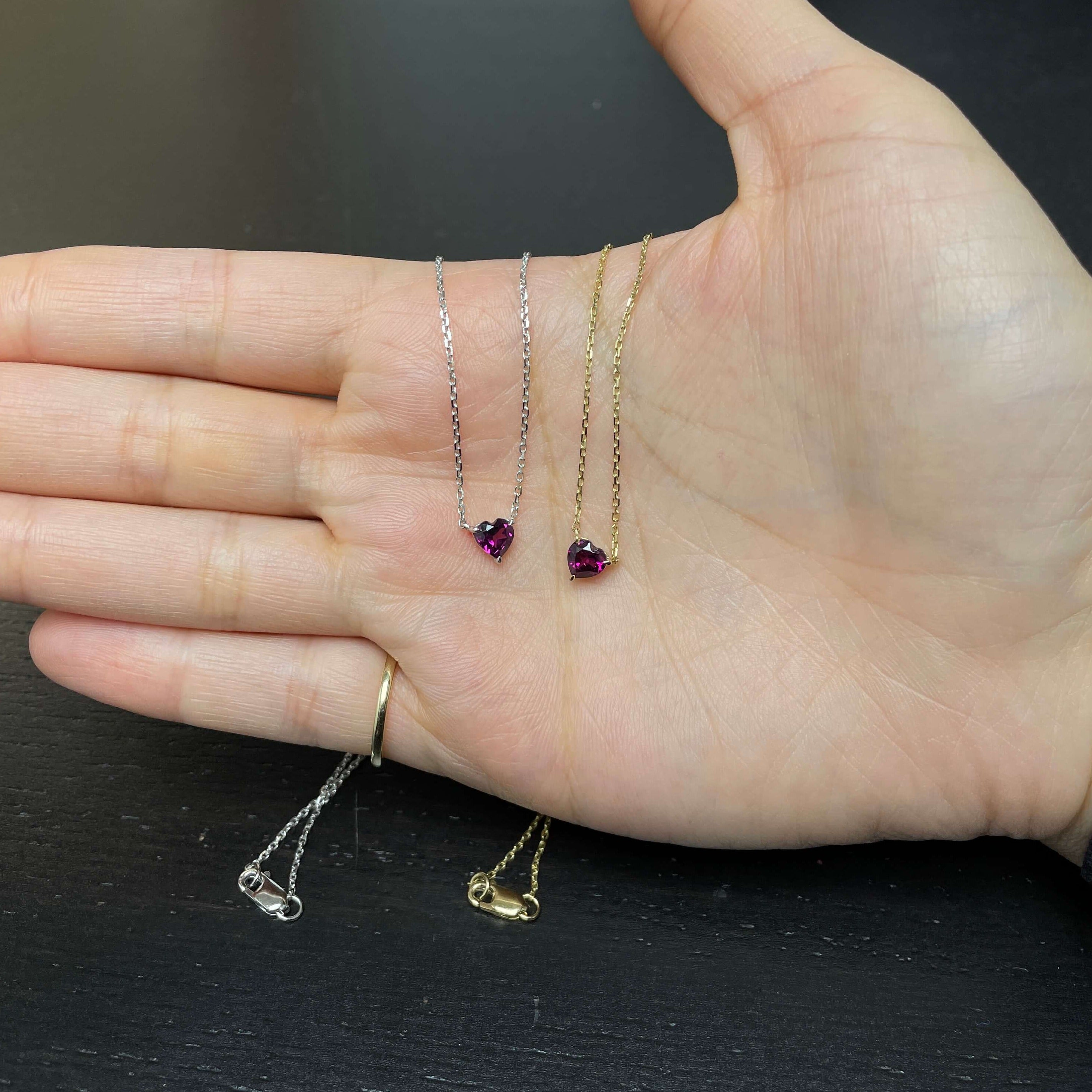 This dazzling Gemstone Heart Solitaire Pendant is the perfect accessory for adding a bit of sparkle and shine to your outfits. This tiny yet dainty pendant can be layered with multiple necklaces to create a unique look, and it’s also great for gifting to that special someone in your life. Let your heart shine with this gemstone trinket! Featuring a Rhodolite Garnet. Part our Love Always.
