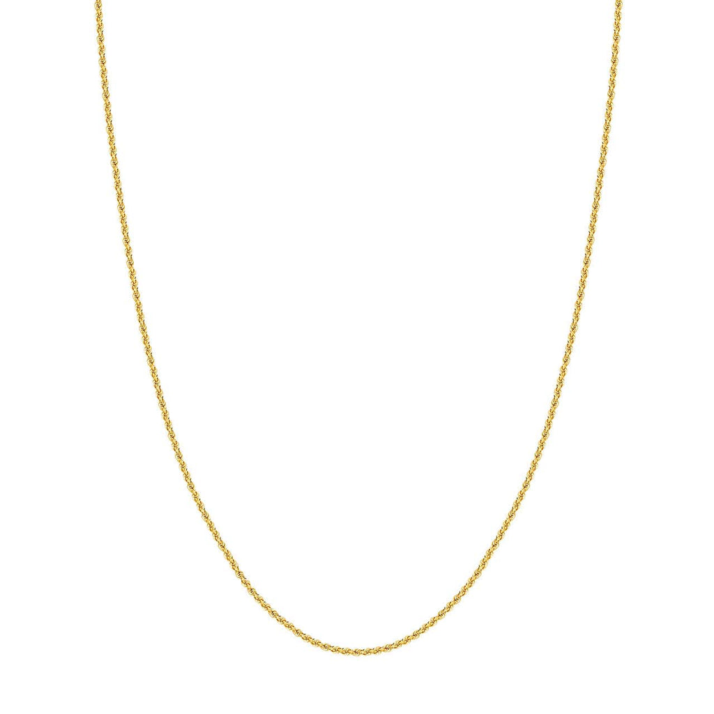 Effortlessly elevate your style with our 14K Yellow Gold Lite Rope Chain Necklace. This rope chain is lightweight is available in different lengths so it is perfect for everyday jewelry as a layering necklace. The gold chain is universal so it can worn as a women's gold necklace or can be a gold chain for men. A classic staple in jewelry, this gold rope chain is definitely an essential for everyone.