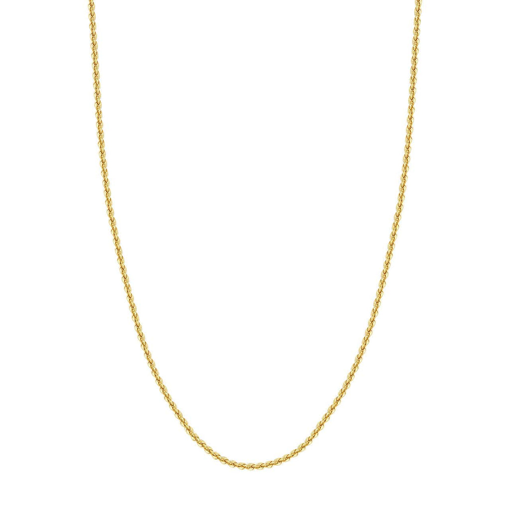 Effortlessly elevate your style with our 14K Yellow Gold Lite Rope Chain Necklace. This rope chain is lightweight is available in different lengths so it is perfect for everyday jewelry as a layering necklace. The gold chain is universal so it can worn as a women's gold necklace or can be a gold chain for men. A classic staple in jewelry, this gold rope chain is definitely an essential for everyone.
