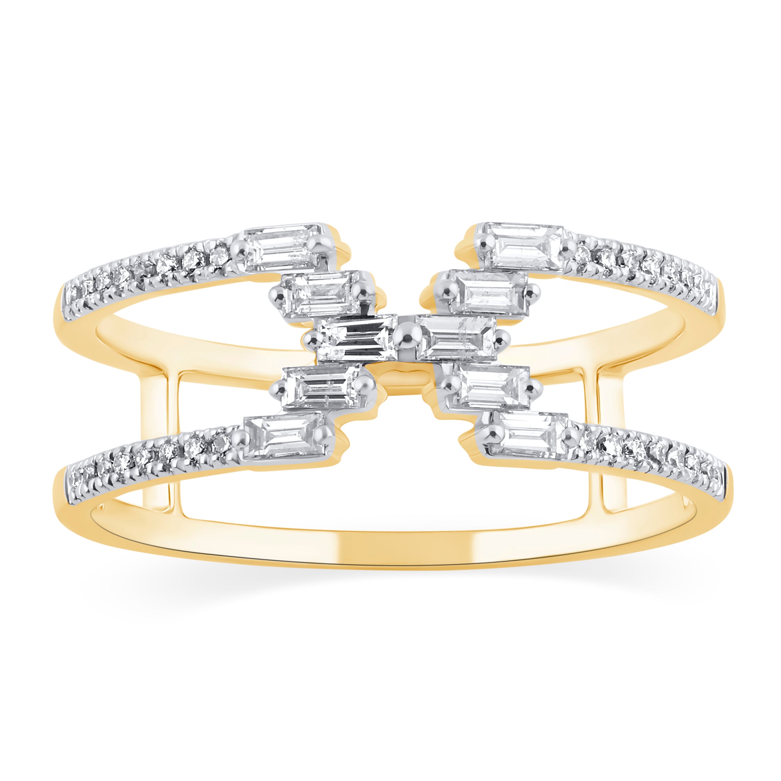 Delight in this Diamond Baguette and Round Fashion Ring crafted from elegant 14k yellow gold. Its unique design features a captivating combination of baguette and round diamonds, creating an exquisite and timeless statement piece. Guaranteed to radiate with sophistication, this fashion ring is sure to be treasured for years to come.
