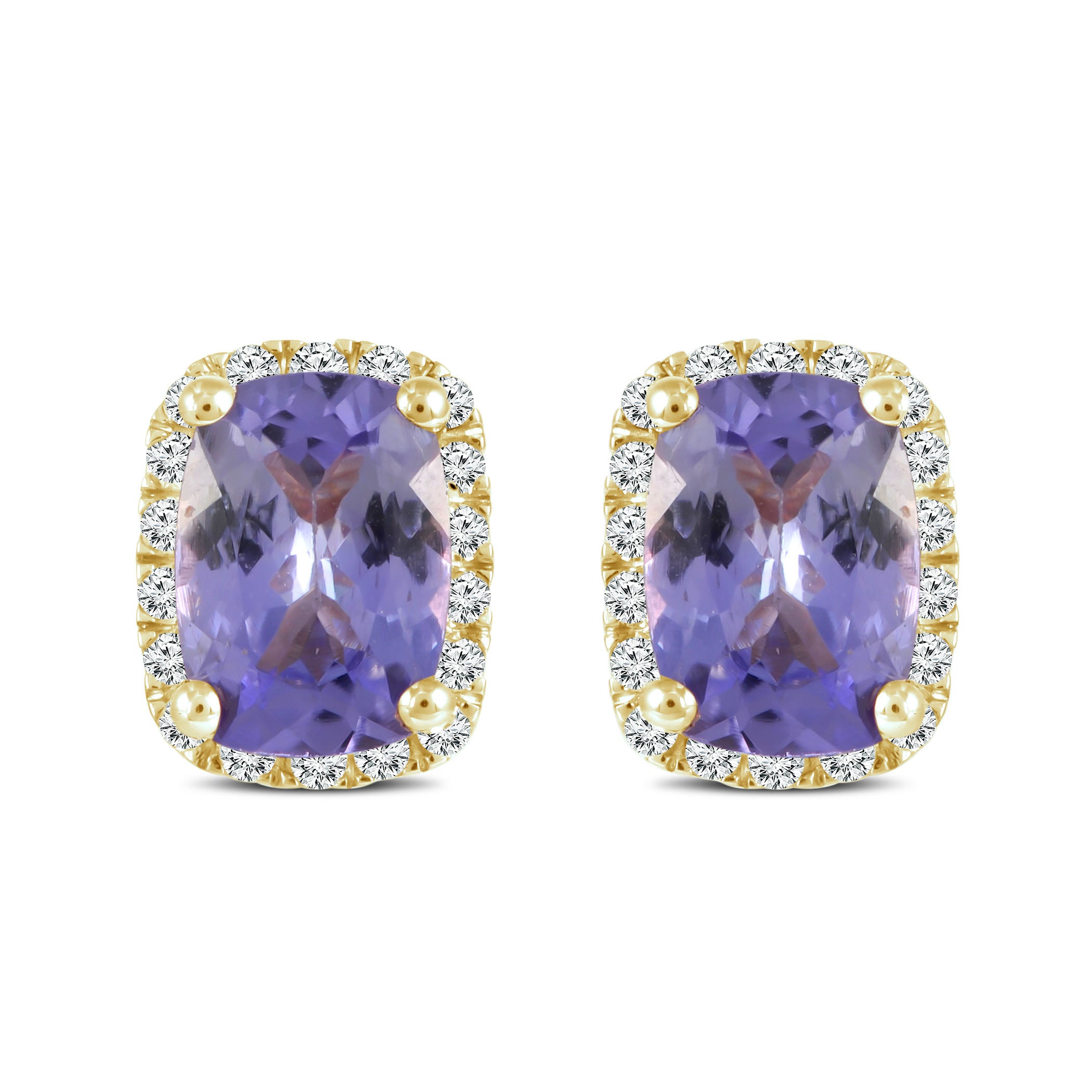 14K Gold Tanzanite and Diamond Stud Earrings